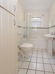 Tiled flooring, Whb, Wc, bath with shower attachment. Window providing light & ventilation