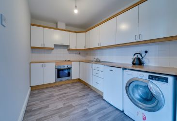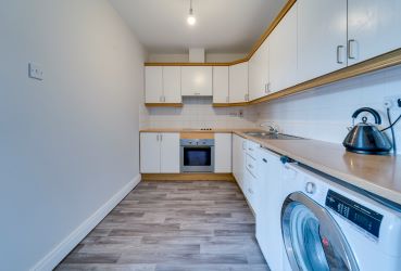Built in wall and floor units with oven, hob and extractor fan, plumbed for washing machine,